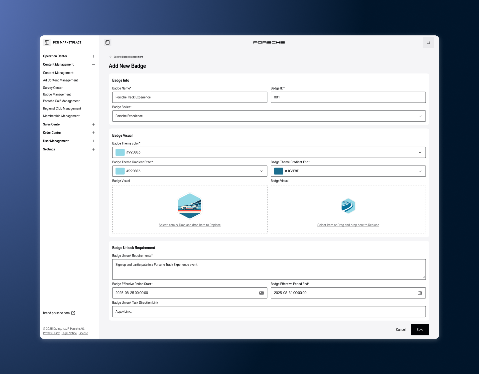 Looking ahead, the badge system is designed to evolve from static recognition into a more immersive and progressive engagement experience, supporting long-term participation and scalable content expansion across the Porsche ecosystem.