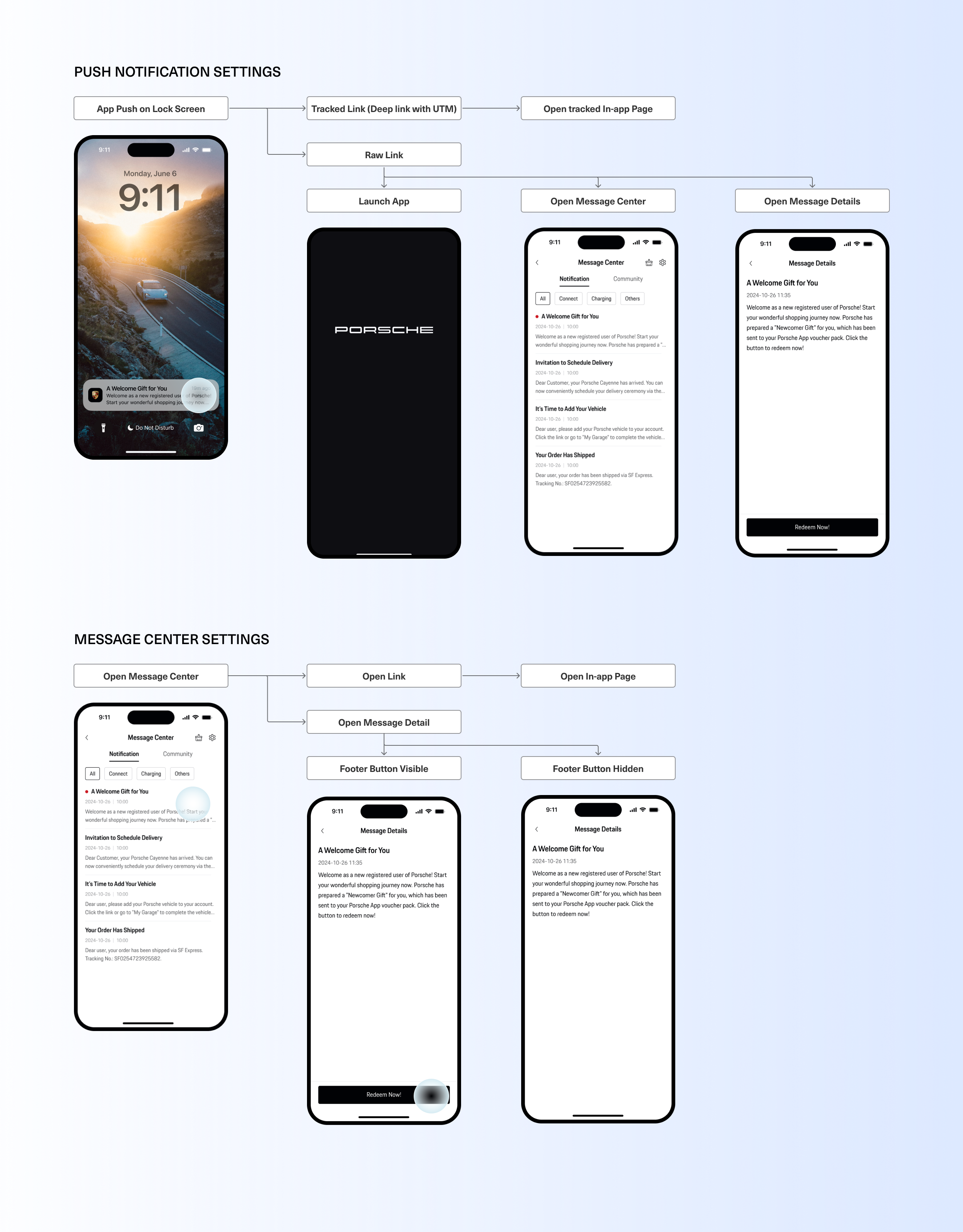 Porsche Internal Operation Console for App Push and SMS Message